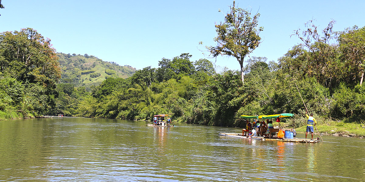 - y los dos bogas (conductores de la balsa).
